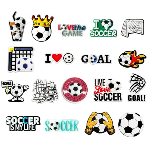 Lot de 18 breloques décoratives pour chaussures de football Jibbitz, accessoires de décoration Crocs pour chaussures de football, pour garçons, filles, hommes et femmes