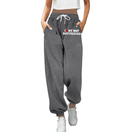 Générique Pantalon Jogging Femme Polaire,Pantalon De SurvêTement Cargo Doublé Polaire Baggy AthléTique Jogging avec Poches DéContracté Tendance Tenues d'automne (Grey, S)