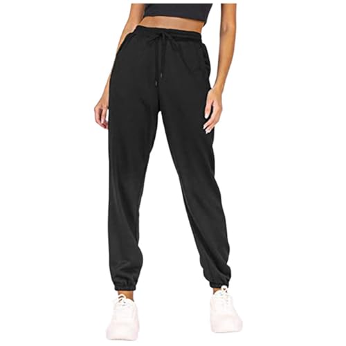 Générique Jogging Polaire Femme,Pantalon De SurvêTement Doublé en Polaire Jambe Large Et Droite Pantalon De Jogging Pantalon D'EntraîNement Taille Haute Pantalon De Yoga avec Poches (Black, S)