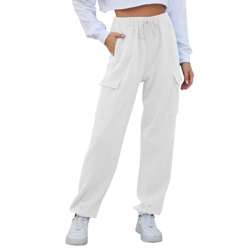 Générique Jogging Chaud Femme Polaire,Pantalon De SurvêTement Cargo Doublé Polaire Baggy AthléTique Jogging avec Poches DéContracté Tendance Tenues d'automne (White, XL)
