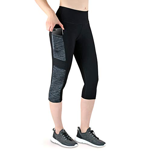Formbelt Legging 3/4 Femme avec Poche Téléphone - Legging Sport Yoga, Jogging - Pantalon Élastique Respirant avec Compartiments Séparés