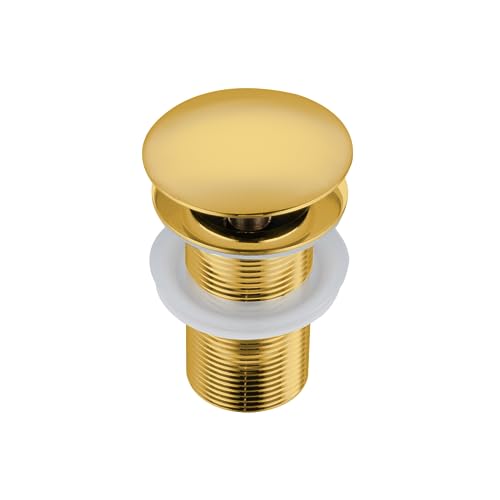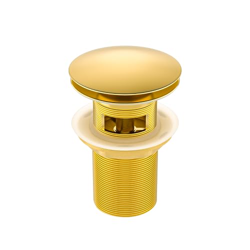 BALNEO Bouchon Évier Universel Click Cone Pop-Up Doré, Laiton, Antirouille, 4 Joints, Joint, Bonde, 66mm X G1 1/4, sans Trop-Plein, Click A