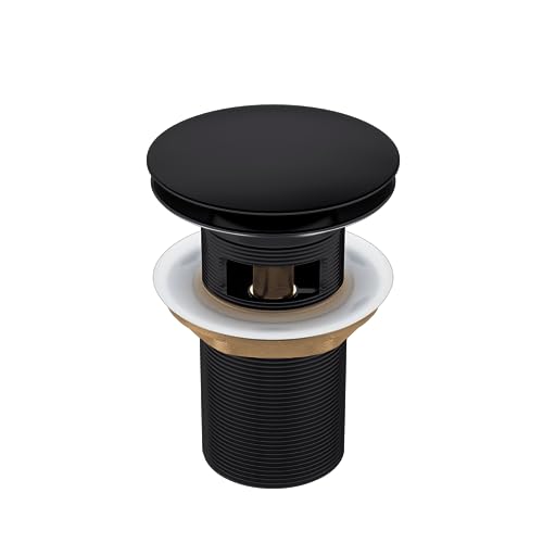 BALNEO Bouchon Évier Universel Click Cone Pop-Up Noir, Laiton, Antirouille, 4 Joints, Joint, Bonde, 61mm X G1 1/4, sans Trop-Plein, Click B