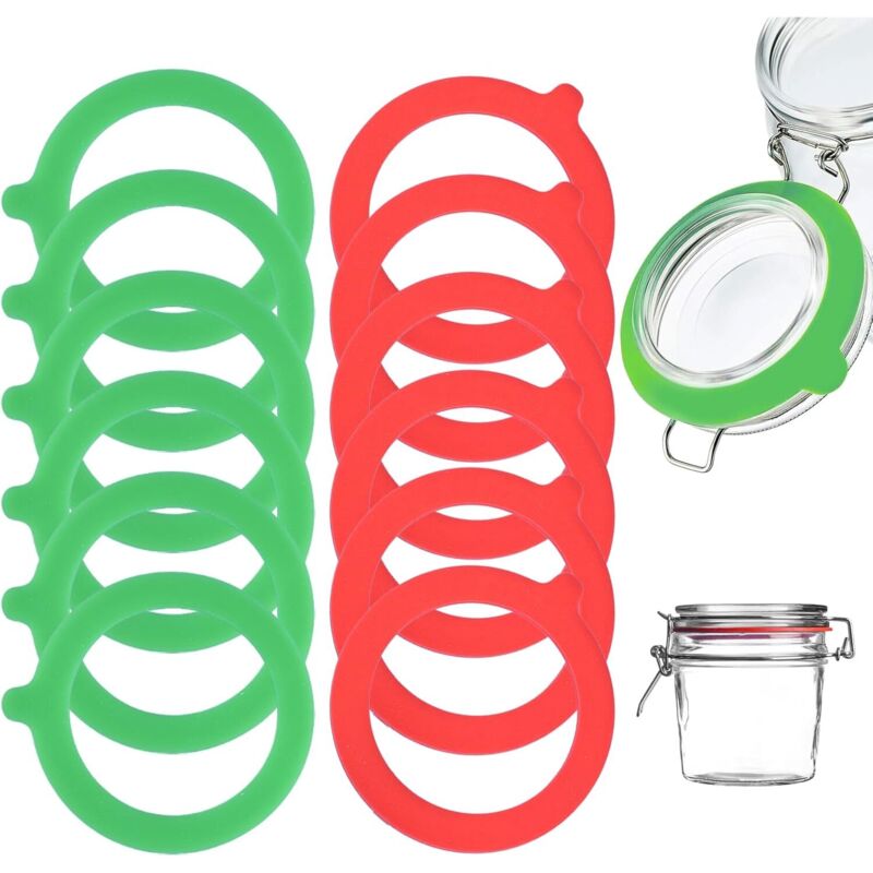 12 Pièces Joint Bocaux en Silicone (Diamètre Intérieur 73 mm,Diamètre Extérieur 95 mm), Joints de Bocal, Anneaux en Caoutchouc,pour Bocaux en Verre Pot à Bonbons Stockage des Aliments Vert/Rouge
