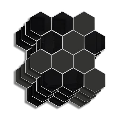 douceur d'intérieur, Crédence Adhésive Cuisine, Salle de Bain, Hexa, Noir, 4 Pièces, 25 x 23,2 cm, Crédence Épaisse, 3D, Carrelage Adhésif Mural, Lavable, Imperméable