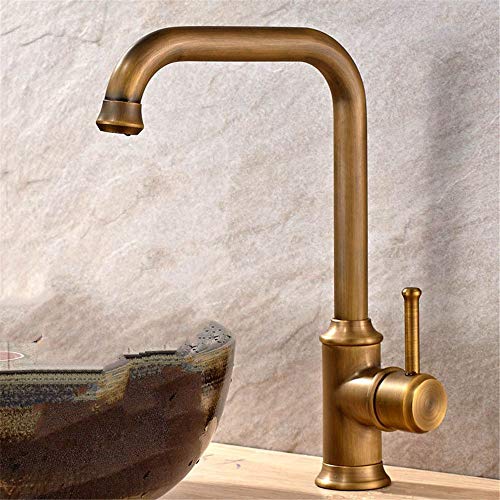 XYNSNDB Robinet de Cuisine mitigeur d'eau Chaude et Froide en cuivre à Joint Unique, Robinet d'évier de Cuisine à poignée Unique avec aérateur Rotatif, Temps Anciens, Temps Anciens