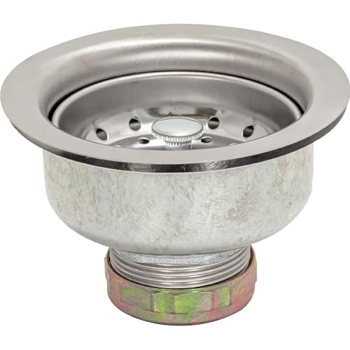 EZ-FLO 30017 Passoire d'évier de cuisine en acier inoxydable avec bride et écrou de joint antidérapant, tige standard, double tasse, ouverture de 3 1/2 po à 4 po en acier inoxydable, 30017