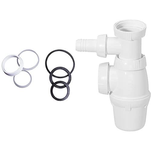 Wirquin 39370003 Assortiment de Joint de Siphon, Blanc et Noir & SP3223 Siphon d'évier, blanc