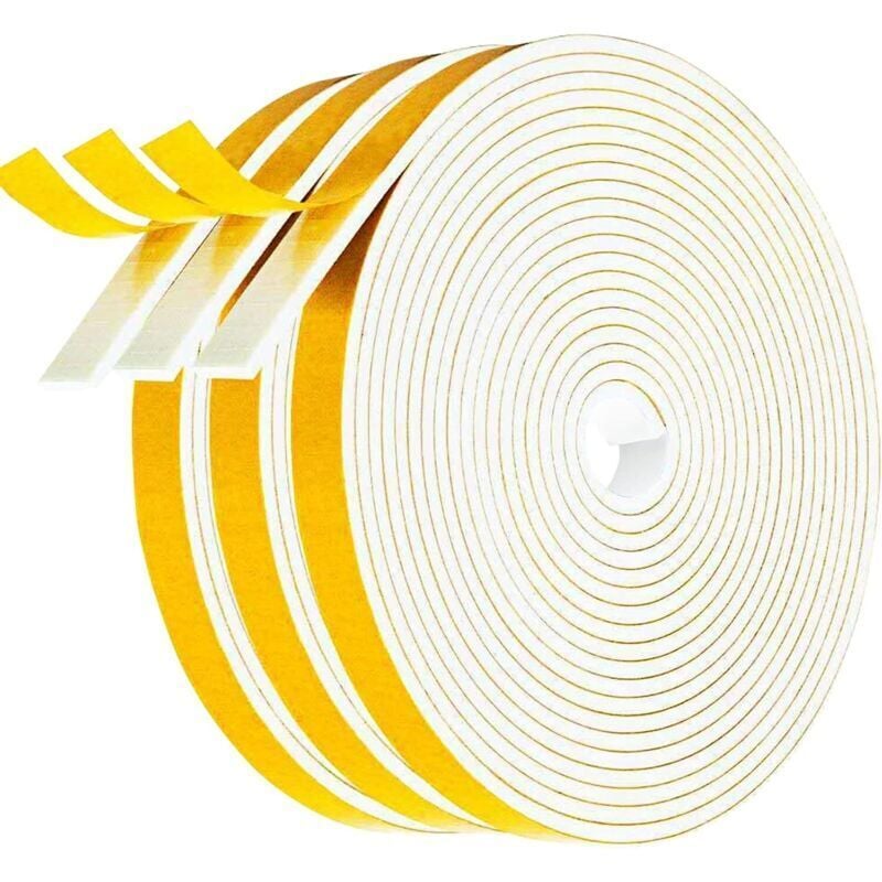 Mousse Auto-Adhésif Joint de Fenêtre et Porte Coupe-Froid 6 mm Largeur 3 mm Épaisseur Blanc Lot