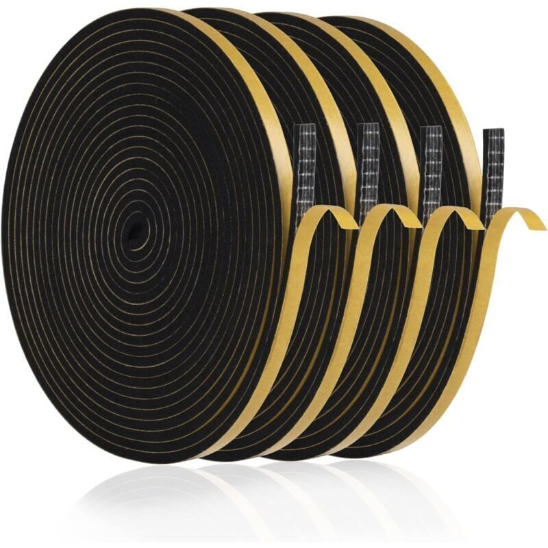 Joint Fenetre Isolation Anti Froid, 20m Joint Porte d'entrée Mousse Adhésif 6 x 3mm Bande Etancheite Autocollante Isolant Fenêtre Contre le vent, Anti pluie, Anti-bruit (Noir)