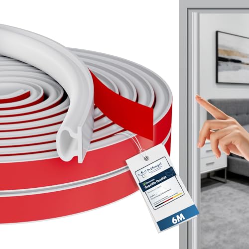 shinfly 6M Joint Porte Fenêtre Isolation Thermique et Phonique, Bande d’Étanchéité Auto-adhésive en TPE, Joint Porte Entrée Anti Courant d’Air, Étanche, Anti Bruit & Anti Poussière (Blanc)