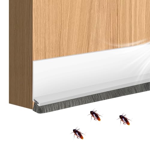 LIULINY 100cm Blanc Joint de Porte, Joint Isolation Phonique Porte, Boudin de avec Bande Brosse, Bas de Anti Courant d'air, Boudin, pour Cuisines, Salles de Bains et Baignoires