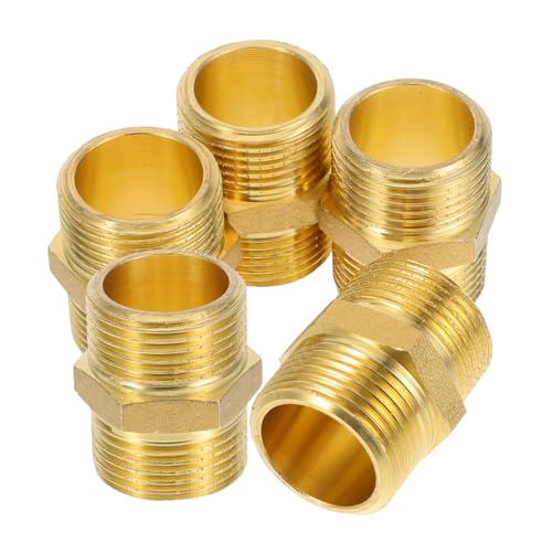 UKCOCO 5pièces Raccord Fileté Droit Laiton pour Tuyau Eau Adaptateur pour Tuyaux Cuivre Connecteur pour Tuyau Arrosage Joint Étanche pour Plomberie