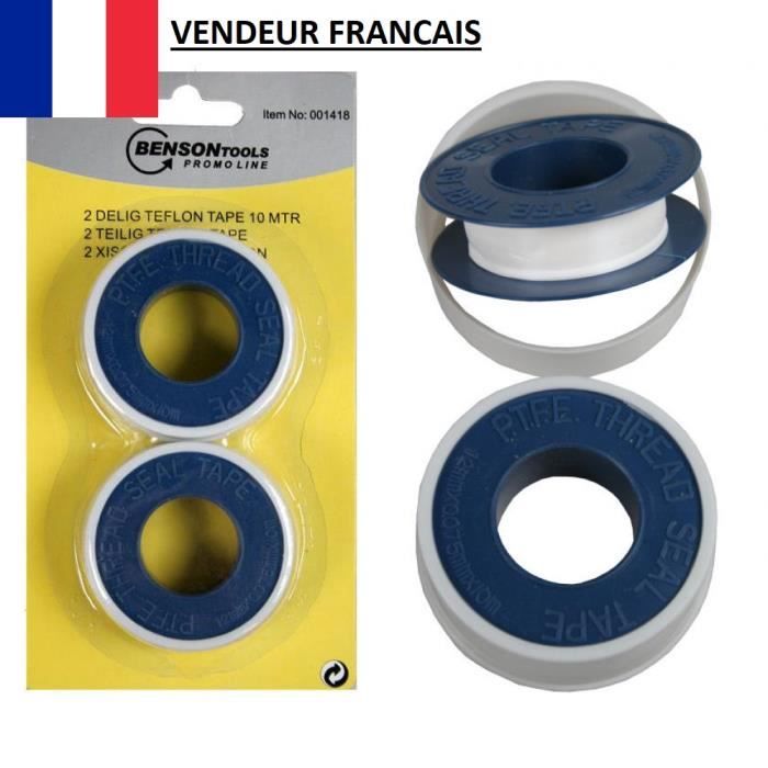 2 Rubans en Téflon 12 mm x 10 Mètres étanchéité Gaz Air Eau Joint Plomberie