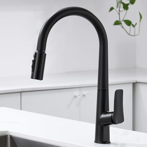 HPTHLY Robinet De Cuisine À 3 Voies avec Douchette en Polyuréthane, Mitigeur en Laiton Noir, Robinet D'Évier De Cuisine À Joint Pivotant, Design Moderne, Luminaire De (Noir)