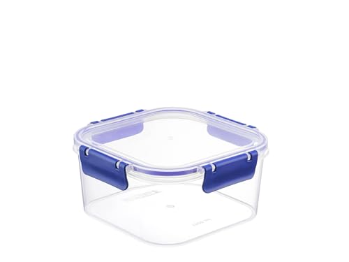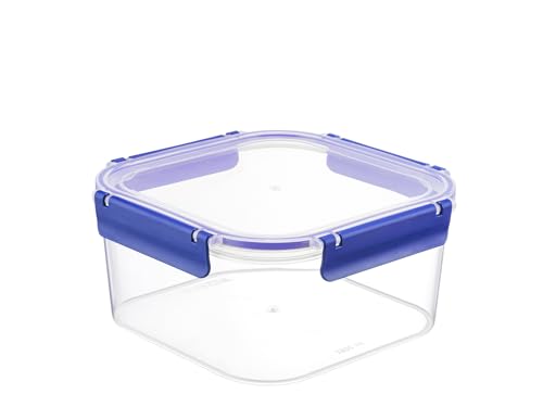 H&H Easymix Conteneur alimentaire 1800 cc en polypropylène transparent avec joint en silicone bleu - Fermeture hermétique Clic-Clac carré - Lave-vaisselle et micro-ondes