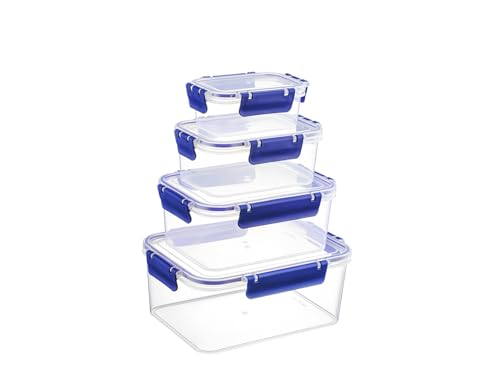 H&H Lot de 4 récipients alimentaires Easymix rectangulaires en polypropylène transparent avec joint en silicone bleu - Fermeture hermétique Clic-Clac - 375cc 900cc 1700cc 2850cc