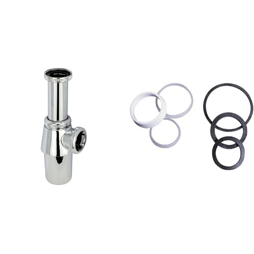 Wirquin 30718960 Siphon de lavabo en laiton, Chromé & 39370003 Assortiment de Joint de Siphon, Blanc et Noir