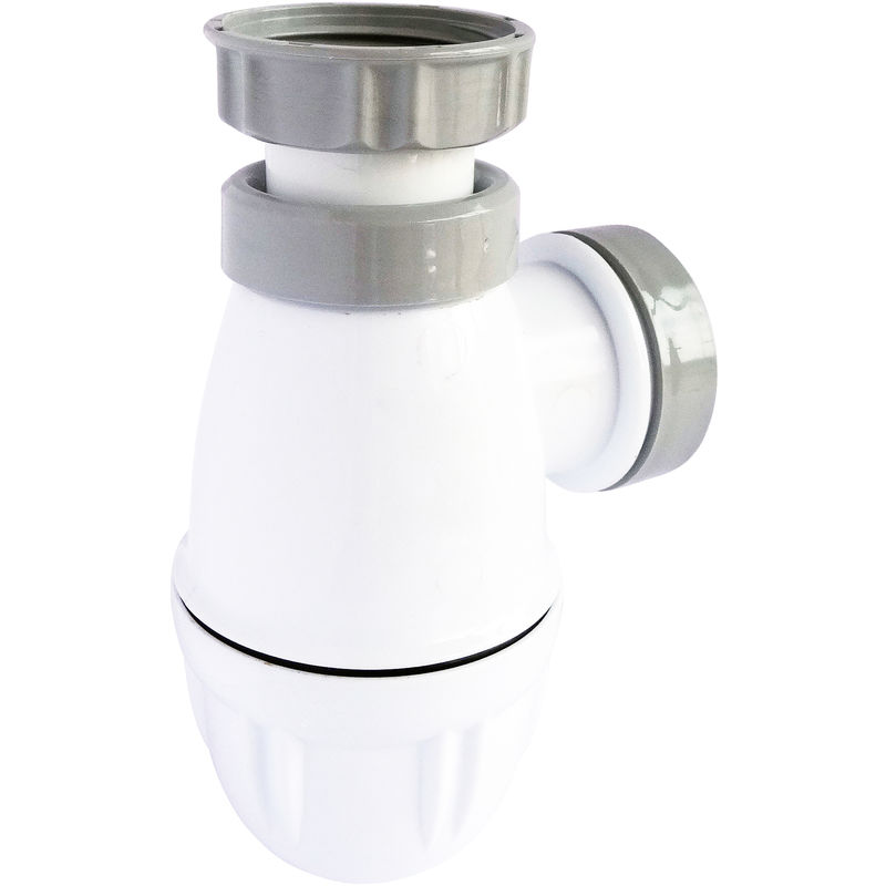 Rue Du Bain – Siphon de lavabo en plastique blanc – Hauteur réglable – Raccord écrou 33/42 – Sortie avec joint conique Ø32