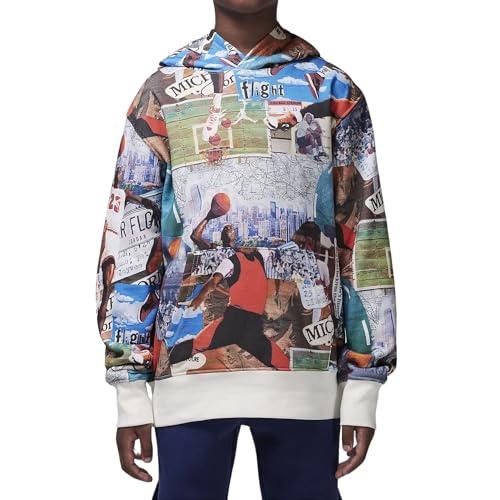 Nike Jordan Sweatshirt Garçon à Capuche MJ Brooklyn Printed Multicolor, Multicolore, 8-10 Ans
