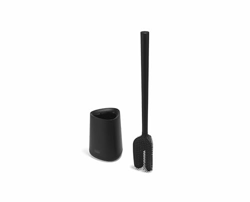Joseph Joseph Flex 360 Lite Brosse WC Silicone avec Support, Nettoyage 360°, Anti-Goutte, Tête Remplaçable, Noir