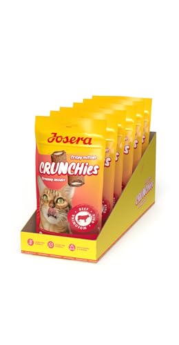 JOSERA Crunchies Beef (6 x 60 g) | Coussin croustillant de qualité supérieure pour Chat | avec bœuf | Formule sans céréales et sans Sucre | Croustillant à l'extérieur, crémeux à l'intérieur | avec