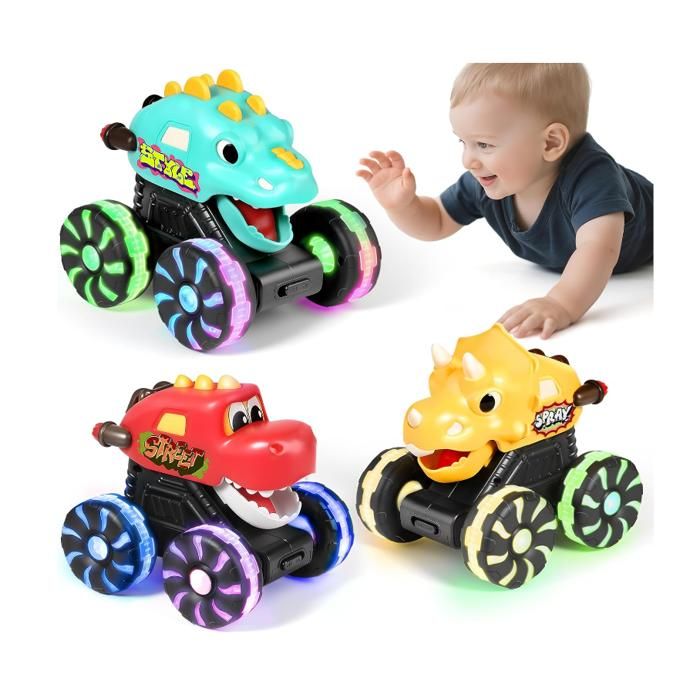 3 Pièces Dinosaure Jouet Monstre Jouet Voiture Bébé 1 an Adapté Voiture Lumineuse à Pression pour Garçons et Filles à Noël