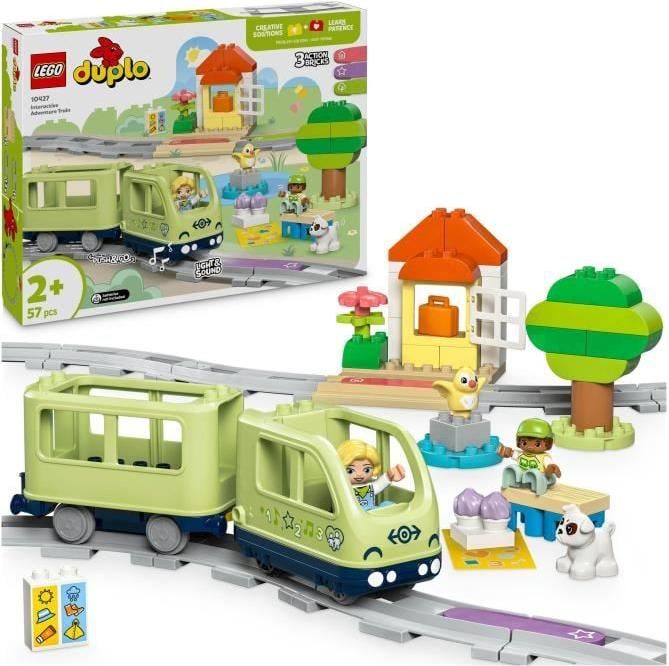 LEGO DUPLO Ma Ville Le train d'aventures interactif, 10427, 57 pièces, Jouet d'éveil 2 ans, Sons et lumières, 4 Figurines