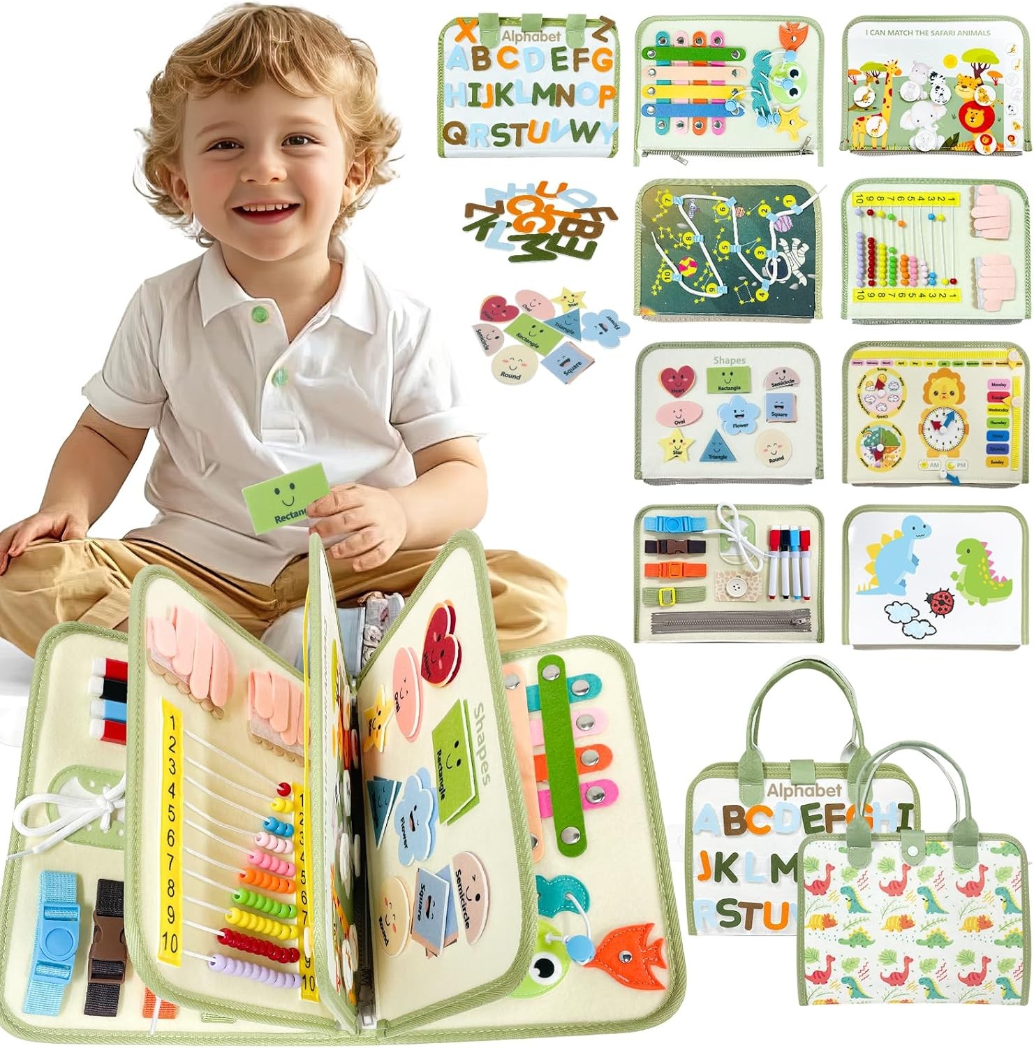 TDRFL-Busy Board Montessori,Jouet Enfant 2 Ans,Jeu Educatif 2 Ans,Livre Montessori 0-3 Ans Enfants,Tableau Sensoriel D'Activités Jeux Educatif,Planche Activités Apprendre Motricité Fine,Cadeau Filles