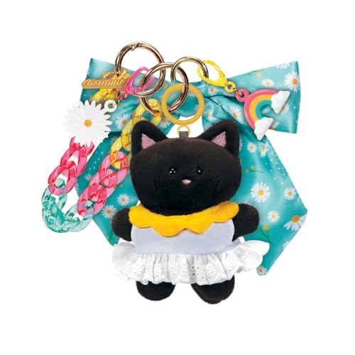 Jakks Pacific Charming Spring Fling Kitty Bijou de Sac Peluche Chat à Accrocher, Porte-Clés Fille Personnalisable, Charms Interchangeables, Accessoire Mode Sac, Jouet 5 Ans et Plus