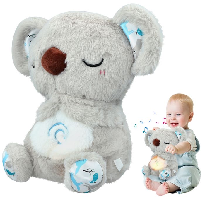 Peluche Koala Loutre RespirantsJouet Bébé 0-5ans avec Berceuses Lumières Respiration CalmanteCadeau Garçon/Fille (Koala