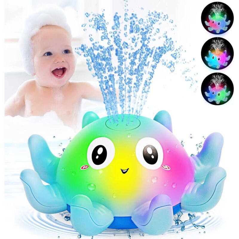 Enfants Jouets de Bain LED Jouet Bain Bébé 1 2 3 Ans Pieuvre Induction Automatique Jet deau Jouets de Piscine pour Bébé-bleu