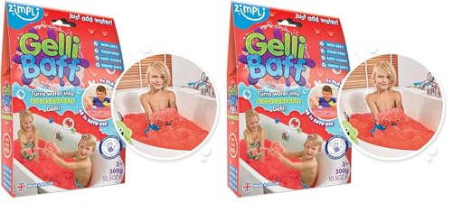 ZIMPLI - Gelli Baff Rouge, 1 Bain ou 6 utilisations de Jeu, comme par Magie, l'eau se transforme en gelée, Cadeau satisfaisant pour Enfants Anti-Stress, Jouet Montessori (Lot de 2)
