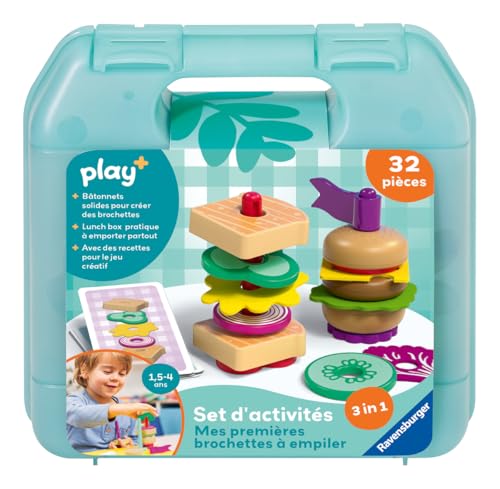 Ravensburger Play + - Set d'activités : Mes premières brochettes à empiler - Jouet bébé dès 18 Mois - Version française - 34062