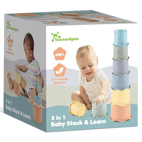 Science4you Gobelets Empilables Bébé 3 en 1 – Jouet Bébé Empilable avec 6 Gobelets, Bain Plage Intérieur, 6 9 12 Mois+