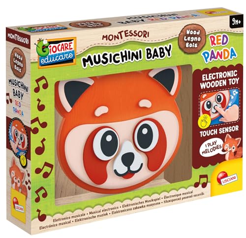 Lisciani - Montessori Baby Bois - Musique : Panda Rouge - Jouet Interactif Musical en Bois pour Bébé dès 9 Mois - Éveil Musical et Lumineux - Jouet Electronique - Favorise la Découverte Sensorielle