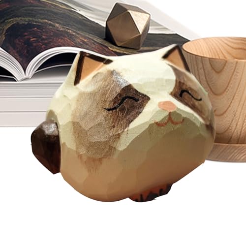 Genérico Figurine de Chat | Jouet en Bois en Forme de Statuette avec Expression | Statue de Chat Miniature - pour Voiture, Bureau, Maison, Noël, et extérieur