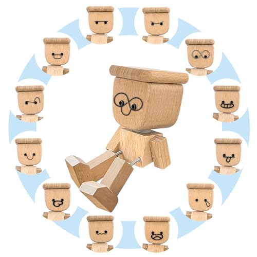 GAZIL Figurine en Bois Mobile pour Tableau de Bord de Voiture, Ornement magnétique en Bois avec 12 Expressions interchangeables, décoration Voiture | Jouet Portable pour Tableau de Bord