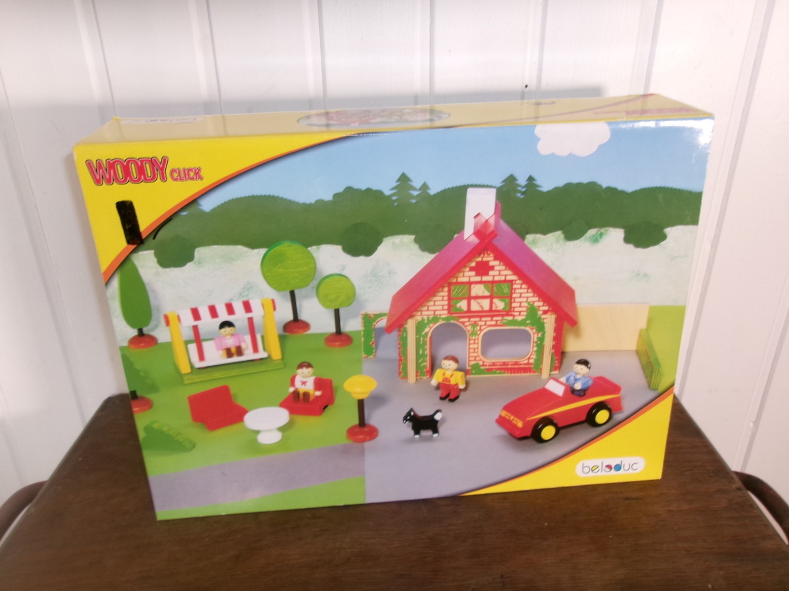 23803 Jeu Jouet bois Woody Click Beleduc la maison voiture balancelle