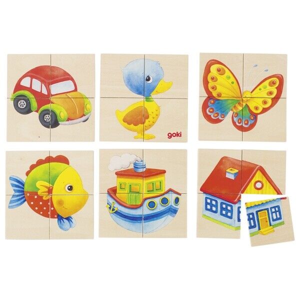GOKI - 56690 - JOUET EN BOIS - KAREMO PUZZLE ET MÉMO, POISSON, CANARD, VOITURE..