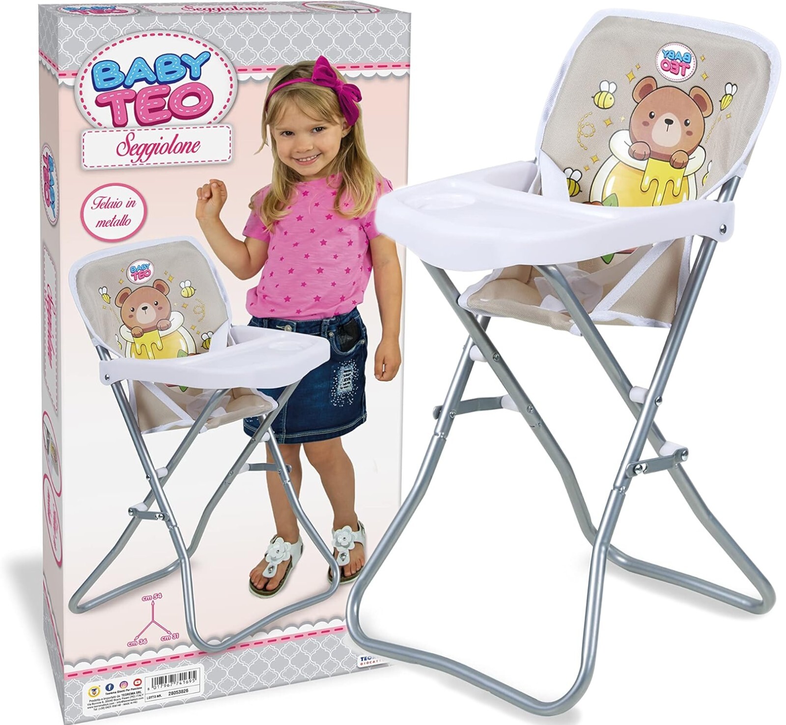 Chaise haute inclinable et pliable Oursons - Pour poupee et poupon - Accessoire Repas - Jeu dimitation - Set Jouet Fille + Carte