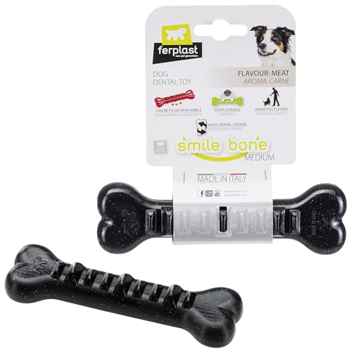 VICASKY Jouet Distributeur de Croquettes pour Chien Jouet à Mâcher Solide Balle à Friandises Forme Os Plastique Résistant Taille Moyenne Jeu D'intérieur pour Chiots et Chiens Adultes