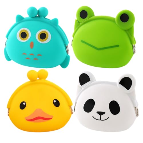 Abaodam 4 Pochettes à Pièces en Silicone Motifs Fantaisie, Paquet à Main pour Garçon et Filles pour Petits Jouets et Accessoires Marchande Garçon Fille Style Aléatoire