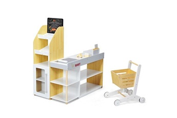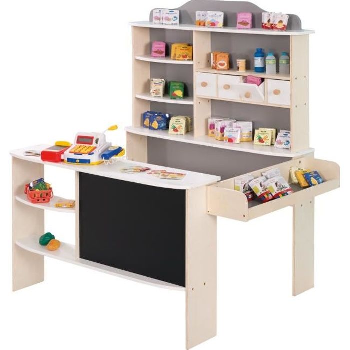 jouet de supermarché 90 x 62 x 111 cm marchande en bois avec caisse de supermarché pour garçons et filles 3 ans+