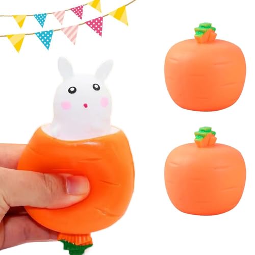 2 Balle Anti-Stress Lapin De Pâques, Jouet Lapin Carotte Pop-up, Balle De Décompression Sensorielle Soft Fidget Jouets pour Les en-fants pour Le Soulagement du Stress, Amusant Lapin Faveur De Pâques