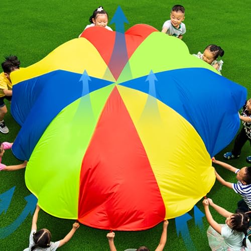 Fafeicy Parachute Géant Enfants, Multicolore Rainbow, avec 16 Poignées, pour Jeux D'intérieur et D'extérieur et Jouet d'exercice