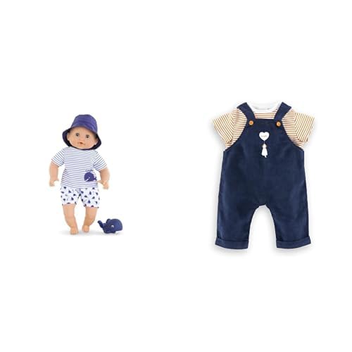 Lot de Corolle - Mon Premier Poupon, Bébé Bain Marin, 30cm, dès 18 Mois, avec Jouet de Bain Baleine, 9000100670 + Corolle - T-Shirt et Salopette, vêtement, pour Poupon 30cm, dès 18 Mois, 9000111190