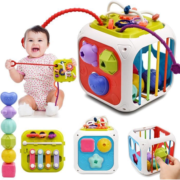 Jouet Bebe 1 2 An 7 in 1 Sensoriel Jouets pour Bebe 6 9 12 18 Mois Naissance Fille Cadeau Educatif Cube dactivité Jeux 1 2 Ans