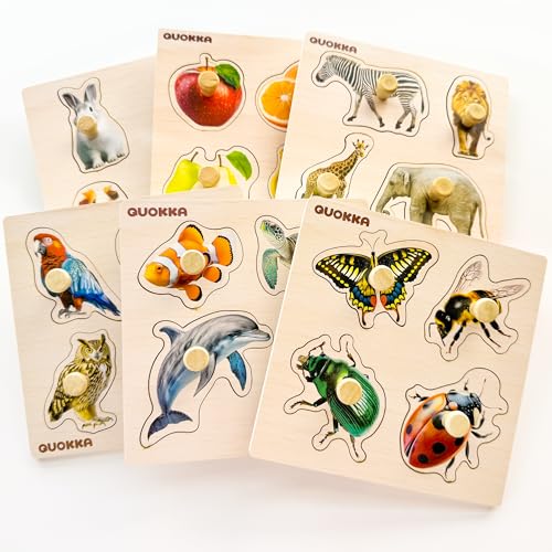 QUOKKA Puzzle Bois Enfant 1 2 3 Ans - 6 Jeux Montessori en Bois avec Animaux Réaliste - Bebe Puzzle Enfant 18 Mois - Jouet Éducatif Cadeau pour Garçons et Filles 2 3 4 Ans