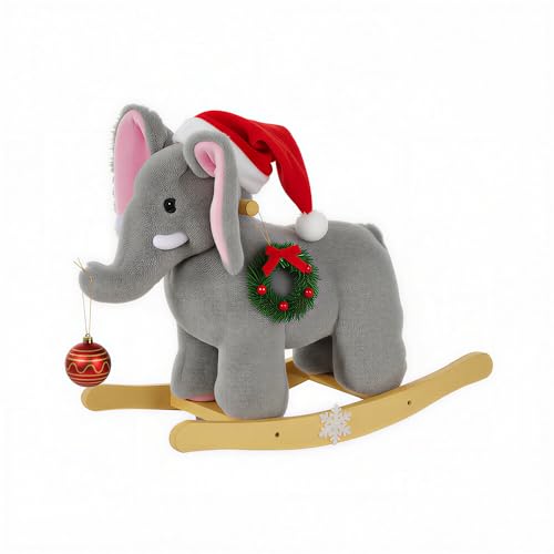 HOMCOM Éléphant à Bascule pour Enfants Cheval à Bascule Jouet à Bascule bébé 18+ Mois avec Musique et poignées, Charge 60 kg, 61 x 23 x 43 cm Gris